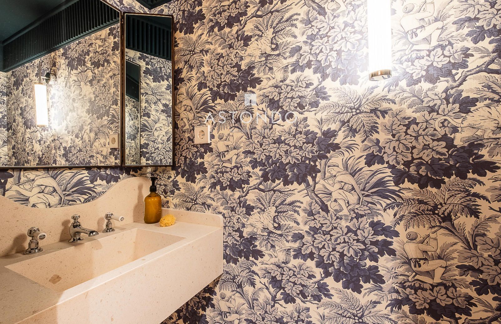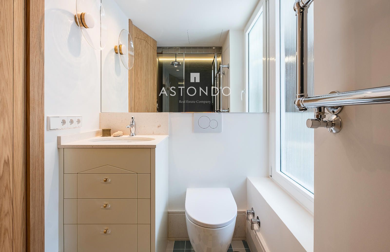 The apartment comprises two bedrooms, both with en-suite bathrooms, a guest toilet, and a spectacular living-dining room with an open-plan kitchen. Everything is equipped with high-end appliances, and the finishes on the floors, doors, and bathrooms are unique, creating a warm and inviting atmosphere with a sophisticated and luxurious touch that is difficult to achieve and that only this studio can deliver.
