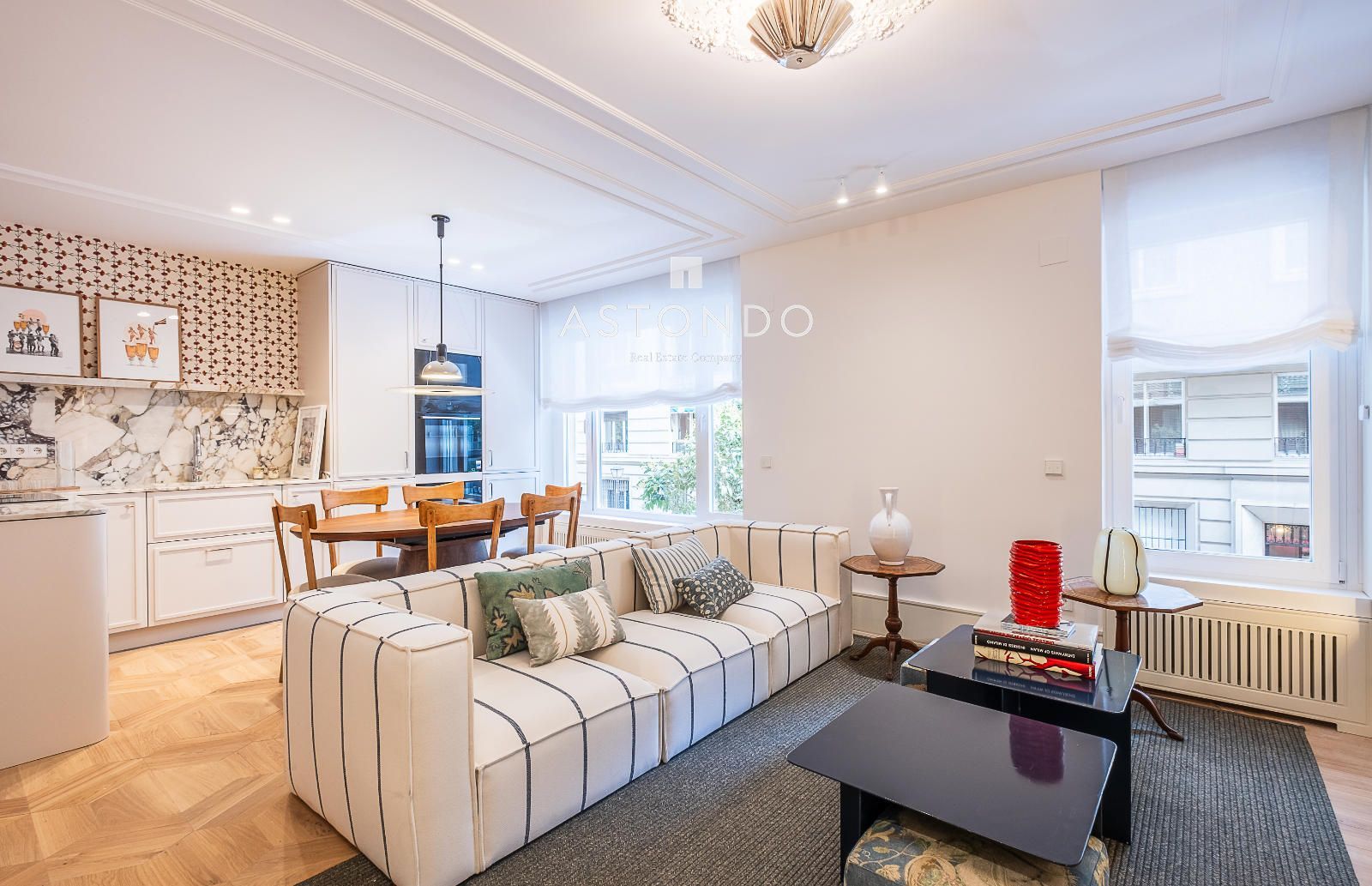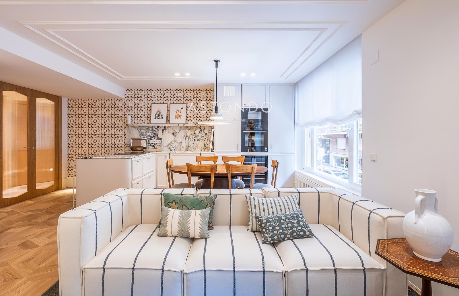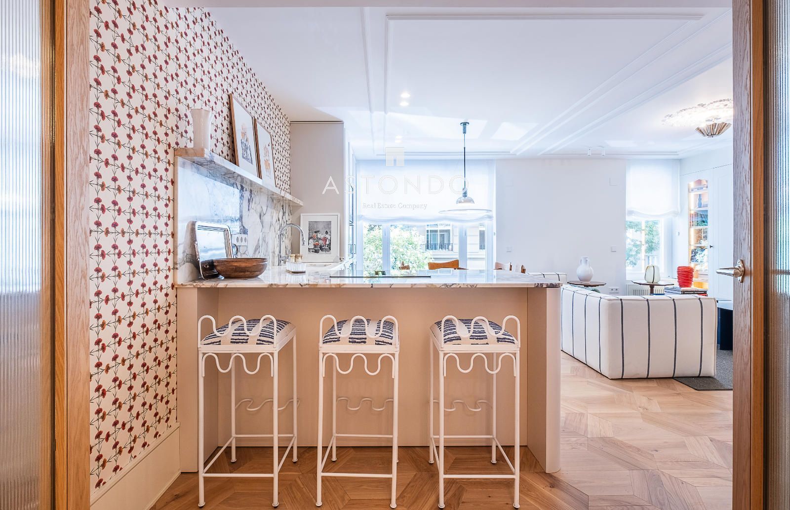 In the heart of the Salamanca district, in the Recoletos neighborhood, we present an exclusive apartment, renovated this year with luxury finishes and a design by the prestigious Pilar García-Ferrer interior design studio, renowned for the quality and design it brings to its projects, creating truly unique homes.