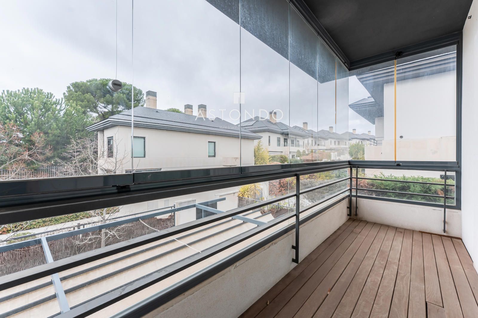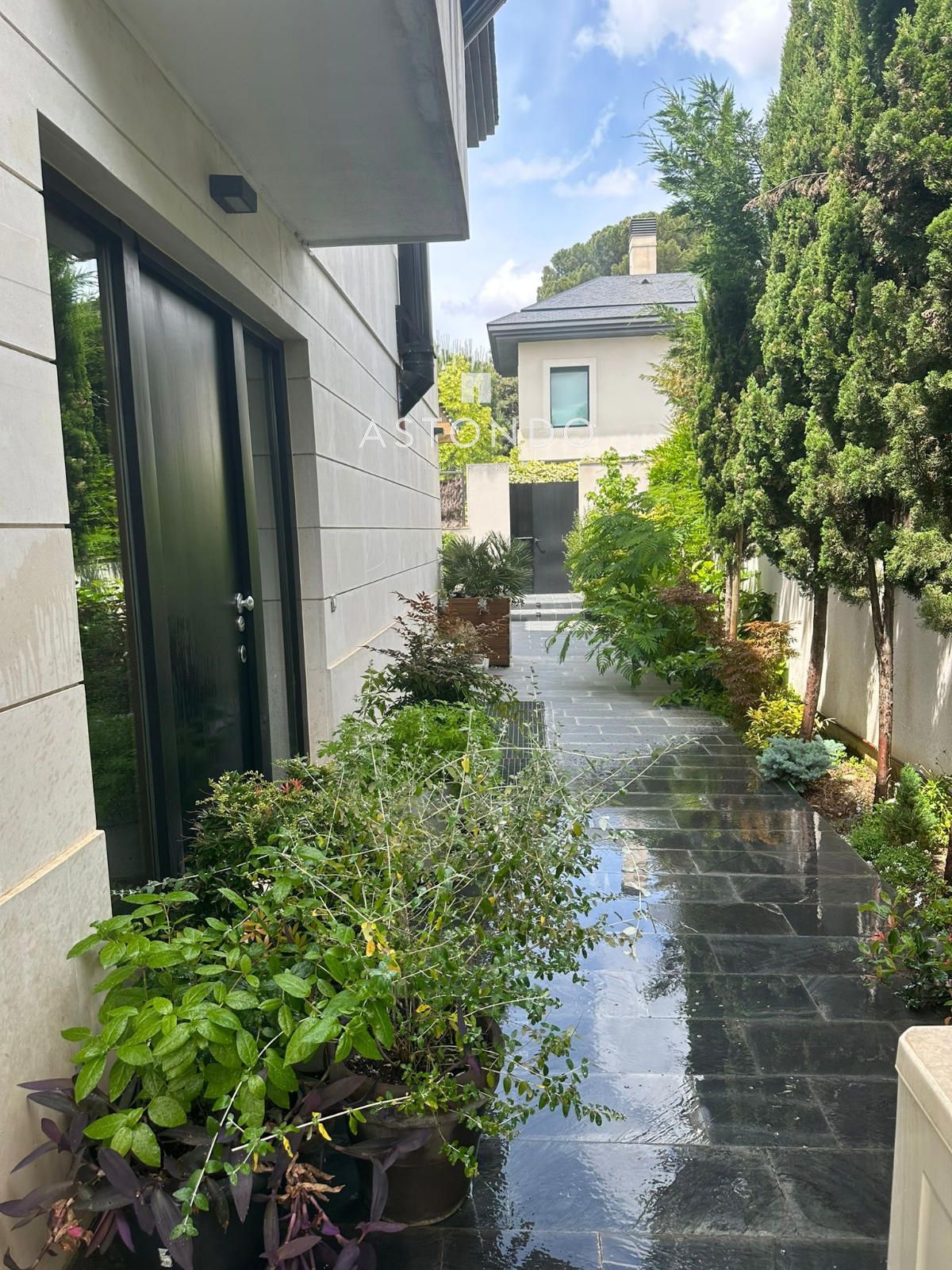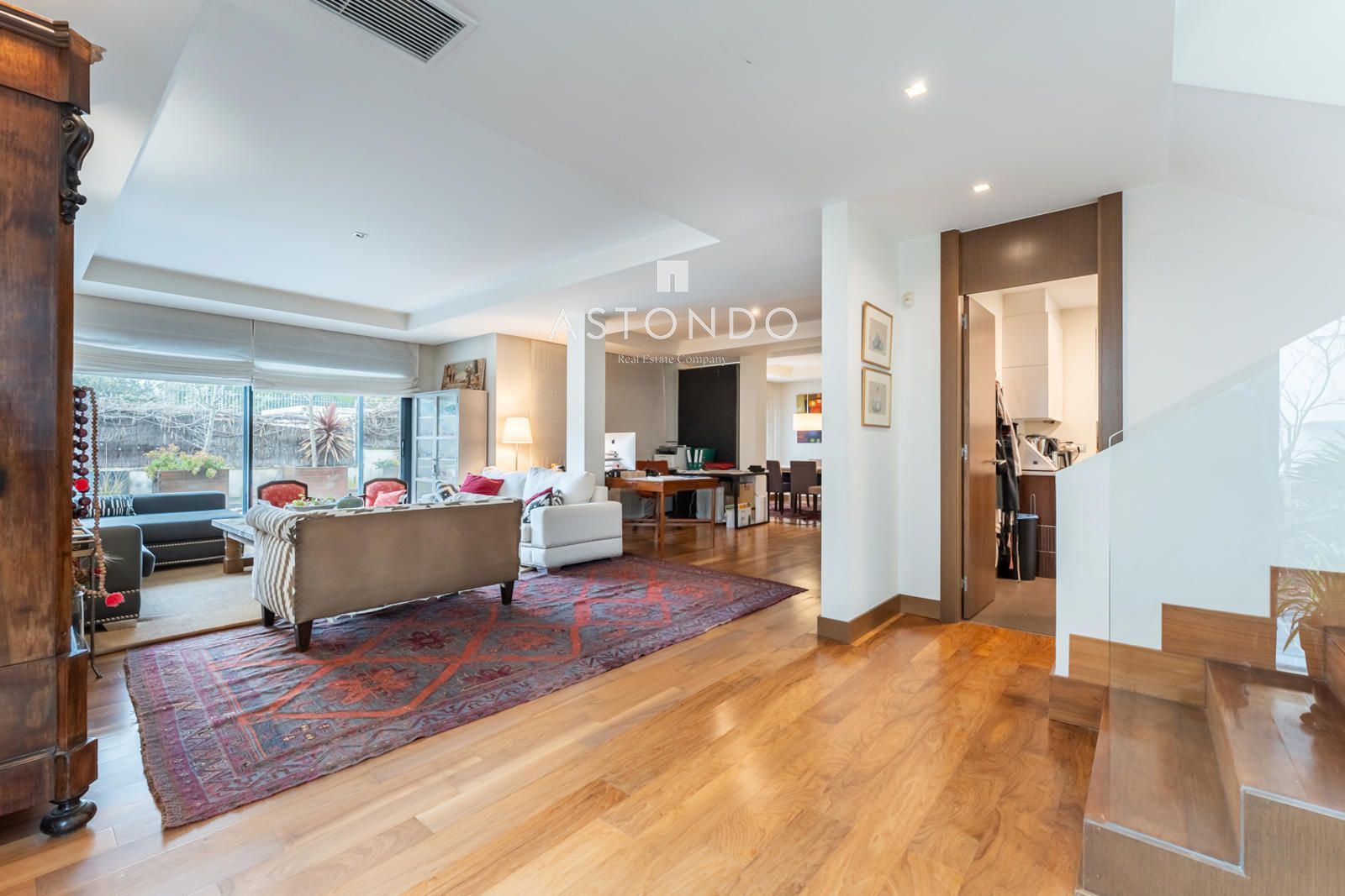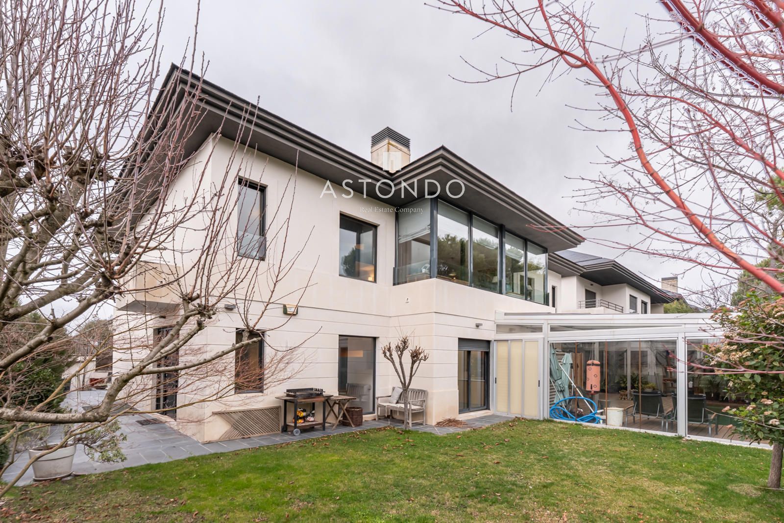 Con 740 m2 construidos, la vivienda se organiza en tres niveles que separan de forma muy funcional las distintas áreas. La planta baja está destinada a la zona de día, con un amplio salón comedor, una gran sala de estar con chimenea, la cocina independiente y dos aseos de cortesía. En la planta primera se ubica la zona de noche, formada por tres dormitorios, 2 con baño en suite, y el tercero con baño en el pasillo y un despacho con grandes ventanales que aportan una excelente luminosidad. La última planta alberga la buhardilla, con dos dormitorios adicionales, dos baños completos y una terraza que los comunica entre sí.