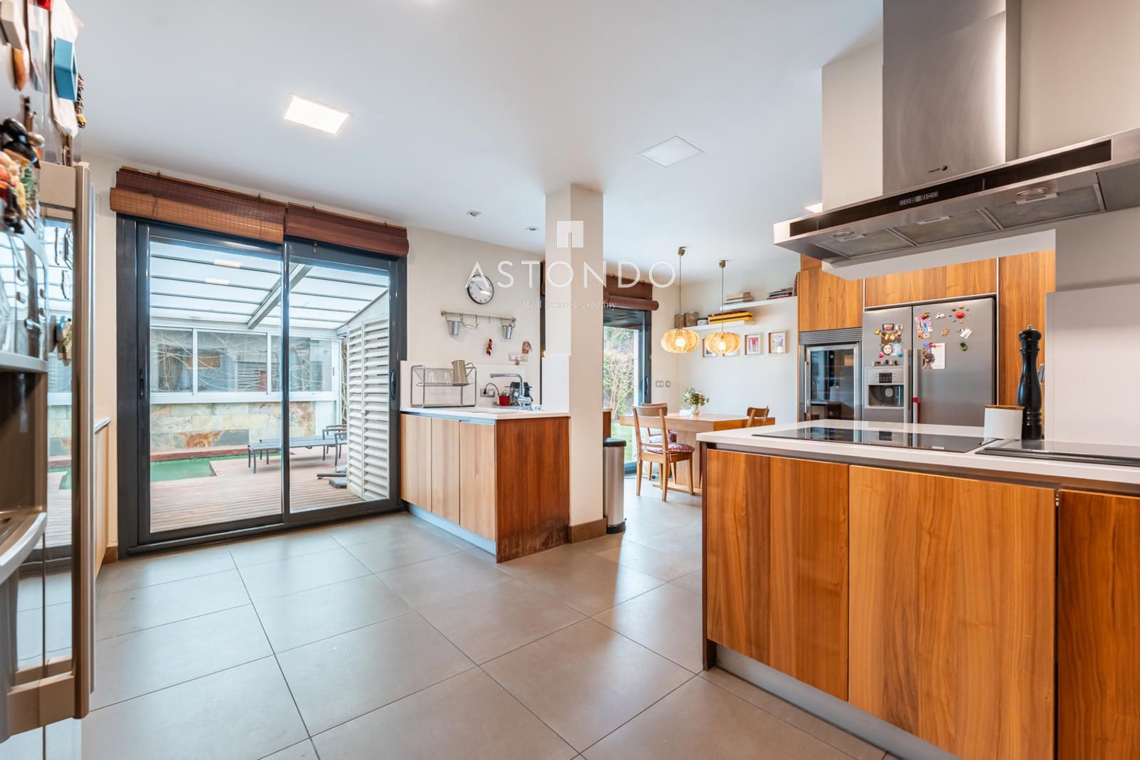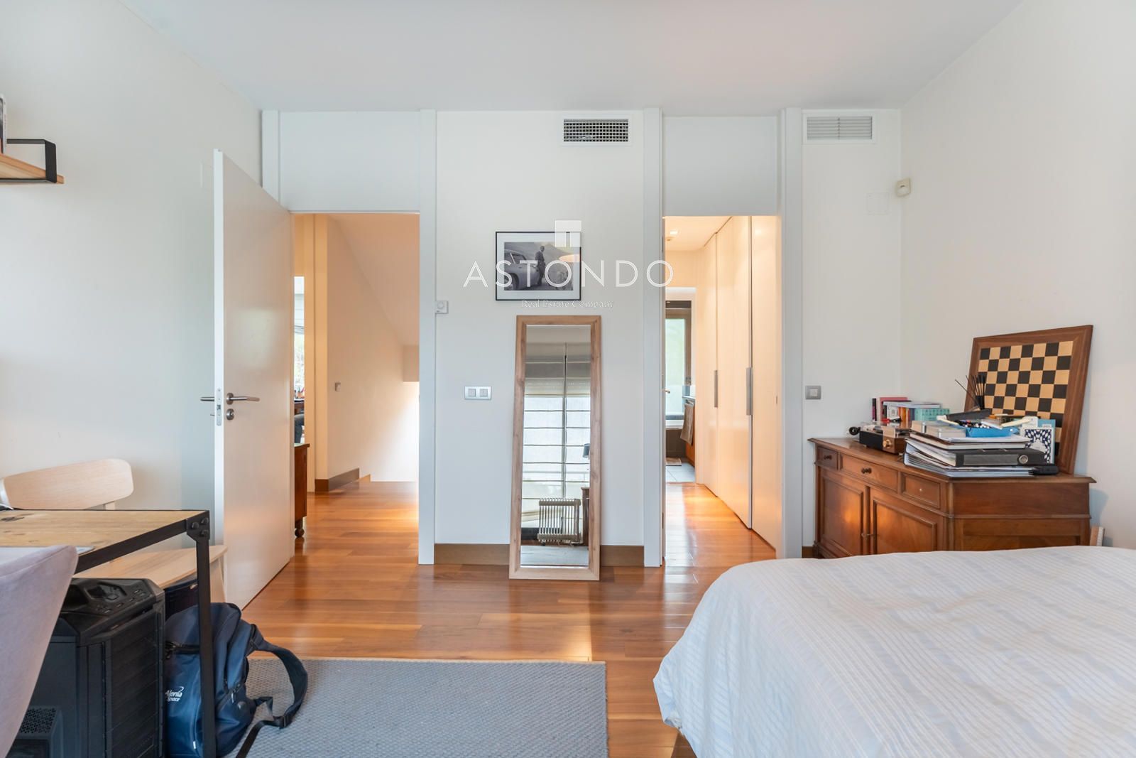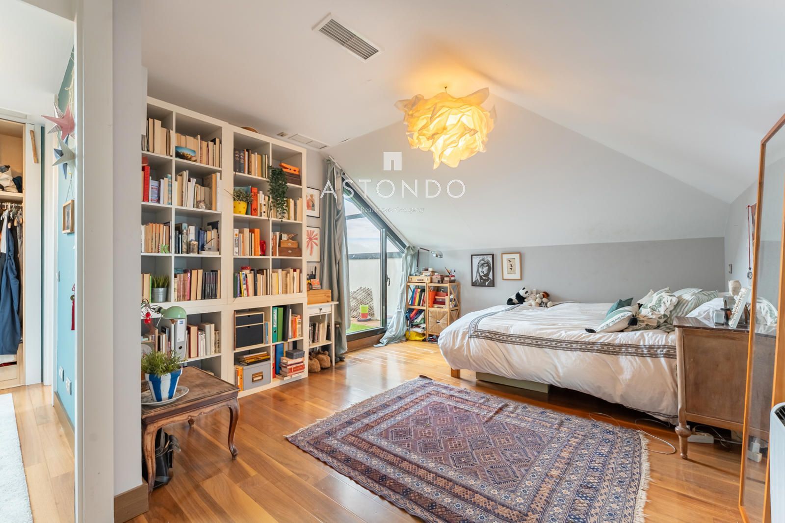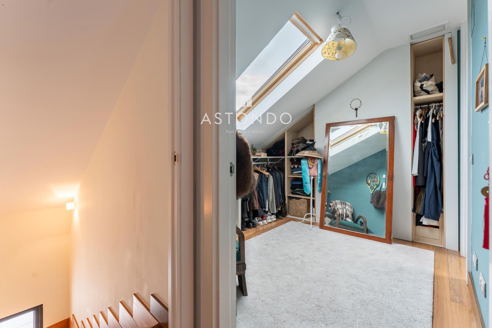 Con 740 m2 construidos, la vivienda se organiza en tres niveles que separan de forma muy funcional las distintas áreas. La planta baja está destinada a la zona de día, con un amplio salón comedor, una gran sala de estar con chimenea, la cocina independiente y dos aseos de cortesía. En la planta primera se ubica la zona de noche, formada por tres dormitorios, 2 con baño en suite, y el tercero con baño en el pasillo y un despacho con grandes ventanales que aportan una excelente luminosidad. La última planta alberga la buhardilla, con dos dormitorios adicionales, dos baños completos y una terraza que los comunica entre sí.