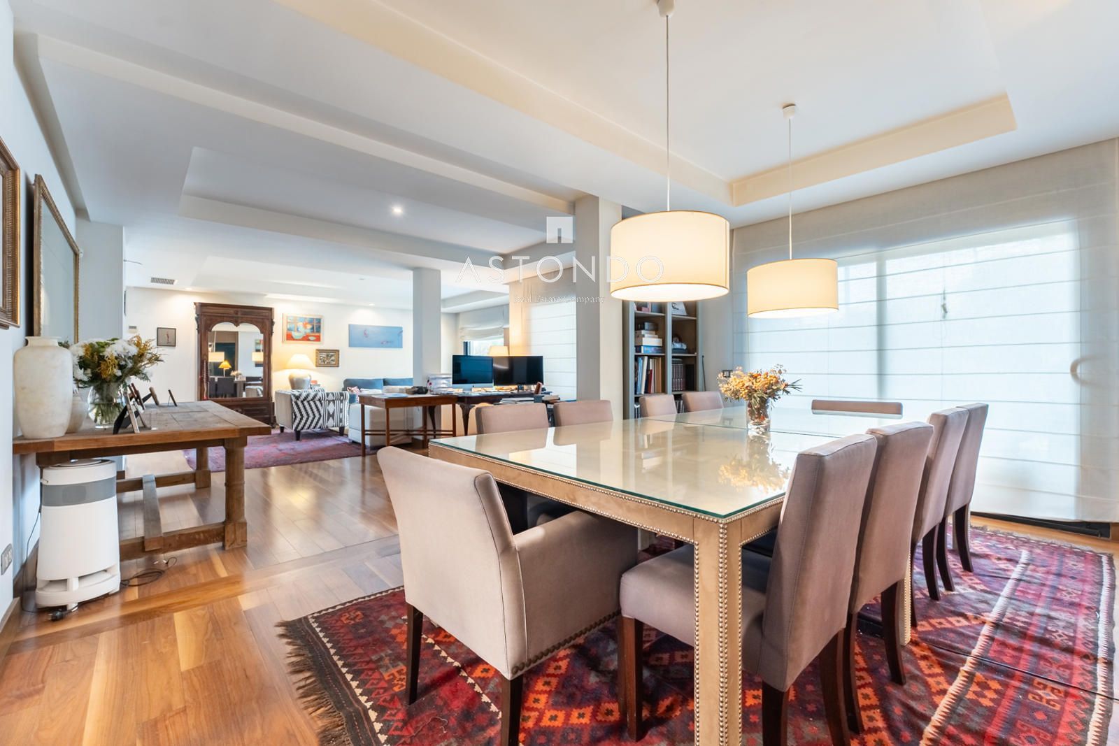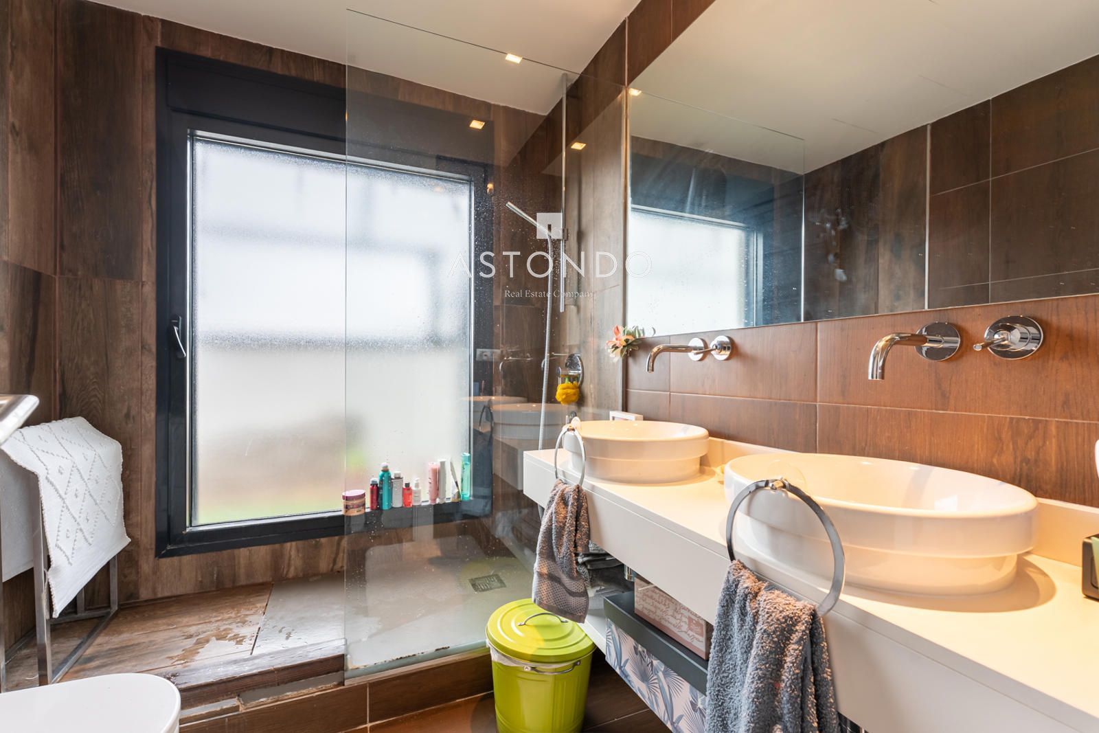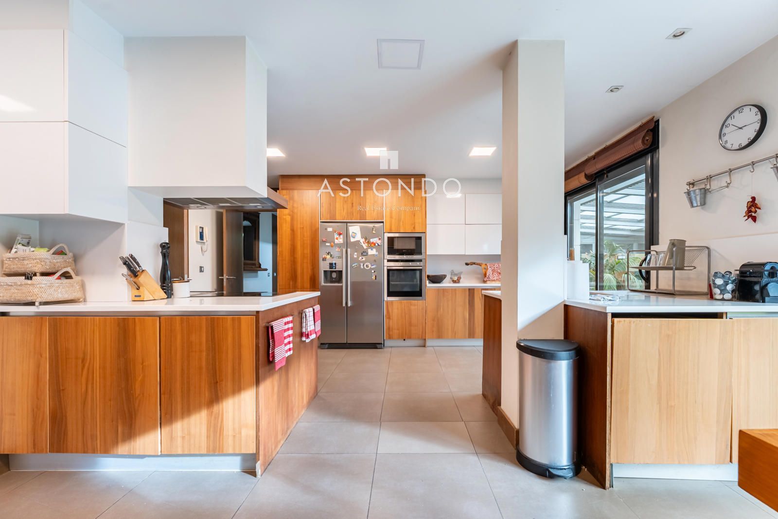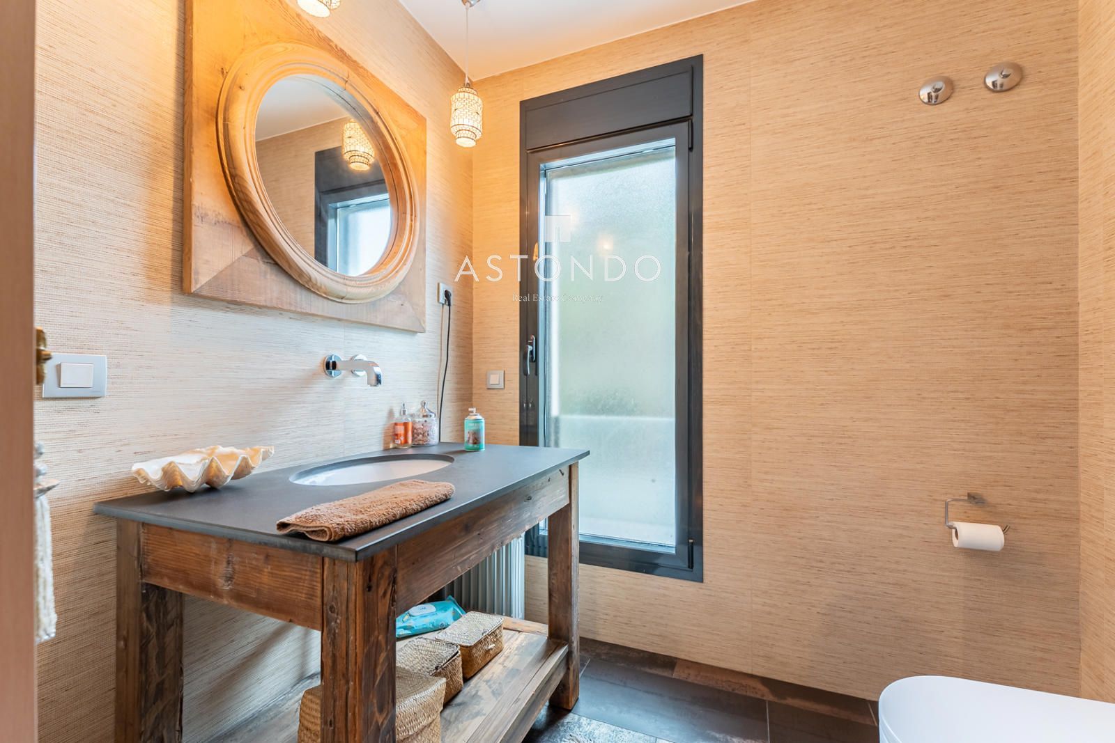 Con 740 m2 construidos, la vivienda se organiza en tres niveles que separan de forma muy funcional las distintas áreas. La planta baja está destinada a la zona de día, con un amplio salón comedor, una gran sala de estar con chimenea, la cocina independiente y dos aseos de cortesía. En la planta primera se ubica la zona de noche, formada por tres dormitorios, 2 con baño en suite, y el tercero con baño en el pasillo y un despacho con grandes ventanales que aportan una excelente luminosidad. La última planta alberga la buhardilla, con dos dormitorios adicionales, dos baños completos y una terraza que los comunica entre sí.