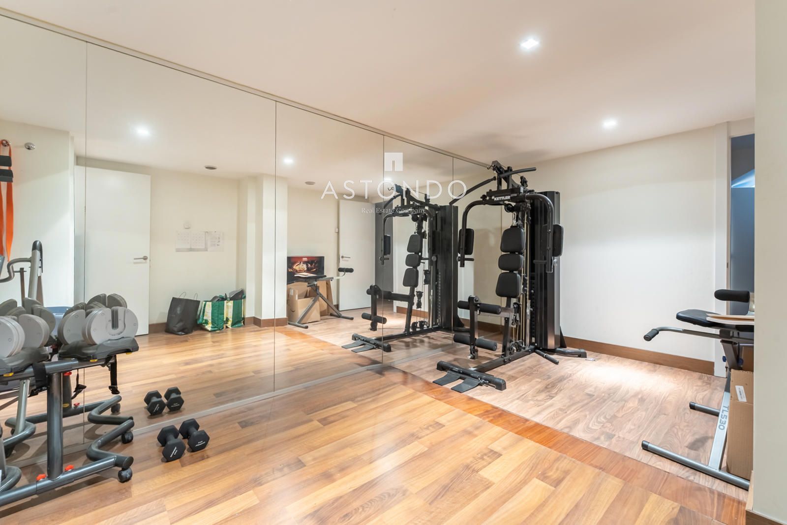 La planta sótano completa la vivienda con un garaje con capacidad para seis vehículos, un gimnasio, dos dormitorios adicionales con baño en suite, ideales como zona de invitados o de servicio, dos cuartos de calderas, dos leñeras y tres amplios espacios de almacenaje.