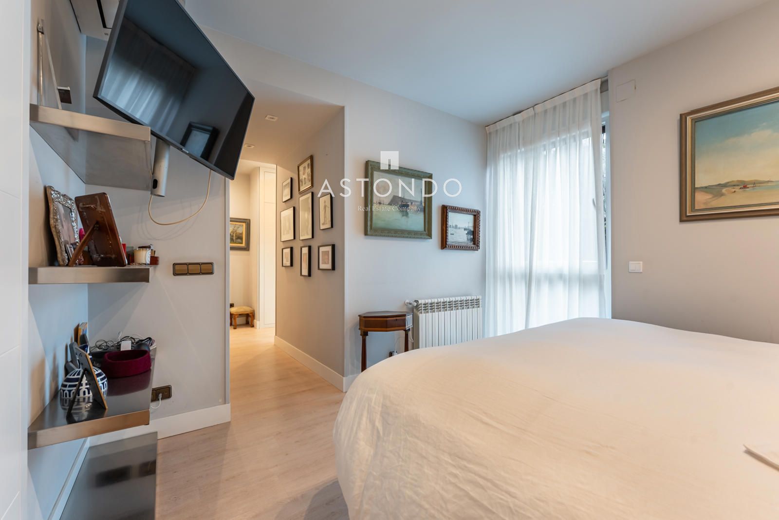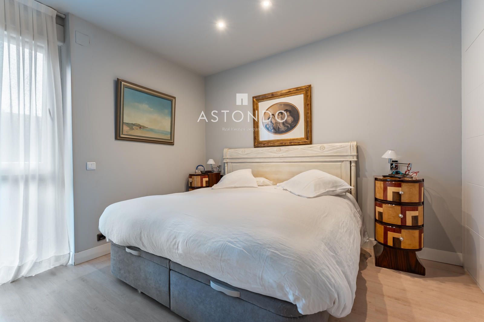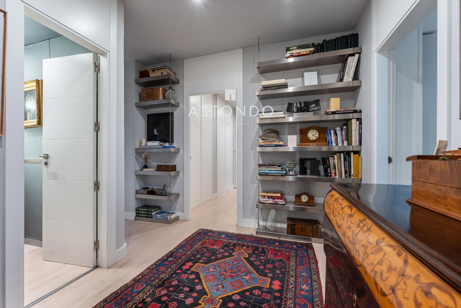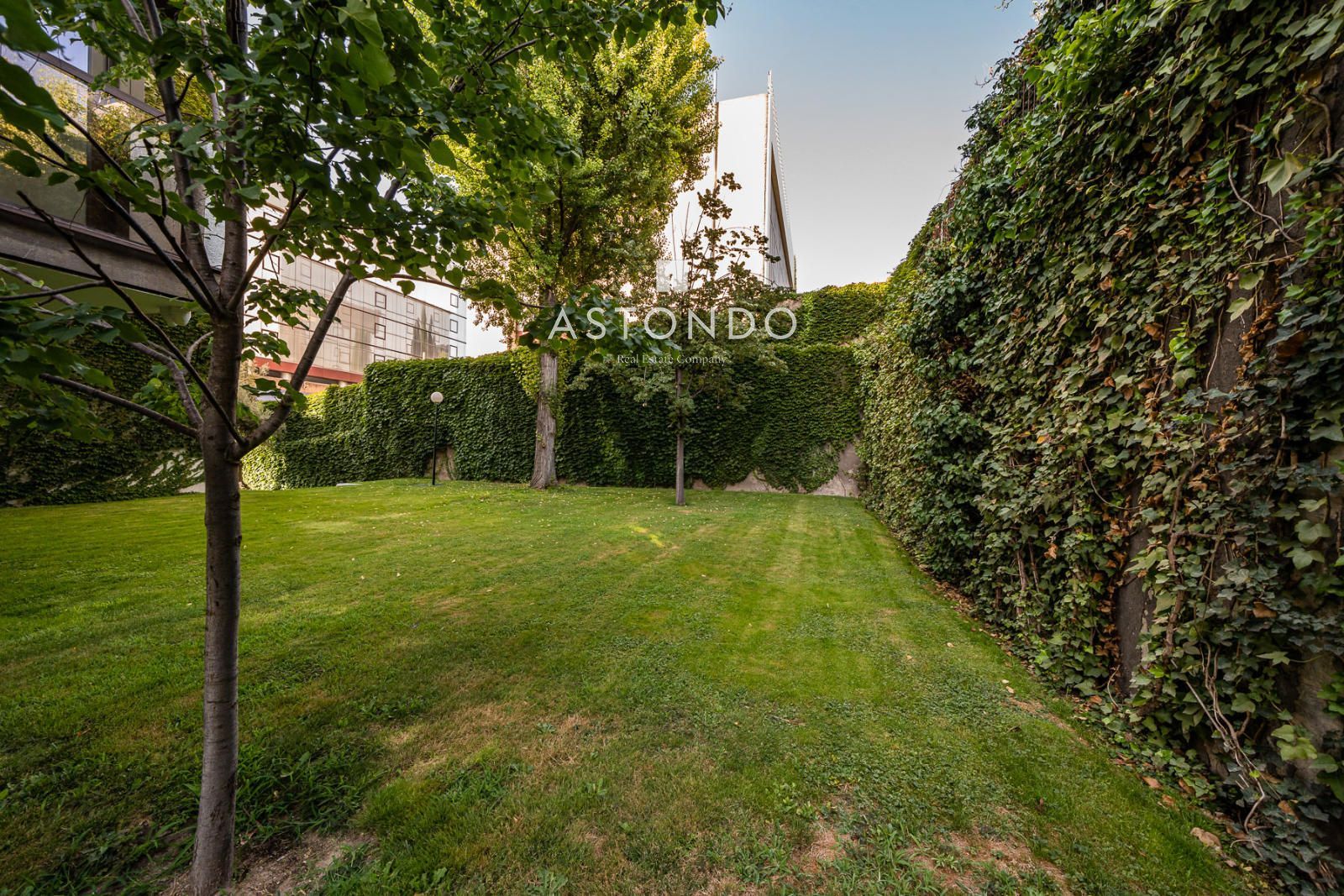 La vivienda ha sido reformada recientemente. dispone de dos entradas, la principal, a la que se accede directamente desde el ascensor, da paso a un amplio hall desde el que accedemos a la cocina, un espacio enorme, con zona de comedor e isla, también dispone de una lavandería y la habitación de servicio, que hoy en día se utiliza como despacho. A la izquierda del hall tenemos un gran salón comedor que destaca por los grandes ventanales que dan a una zona del jardín muy tranquila, casi parece un jardín particular, por lo que es muy tranquilo. La zona más privada de la casa está separada por una puerta, por la que accedemos a un pasillo, donde hay un gran armario ropero. La habitación principal cuenta con zona de vestidor y baño en suite, así como más armarios ropero, las otras dos habitaciones comparten otro baño. Todas las habitaciones tienen mucha luz natural.