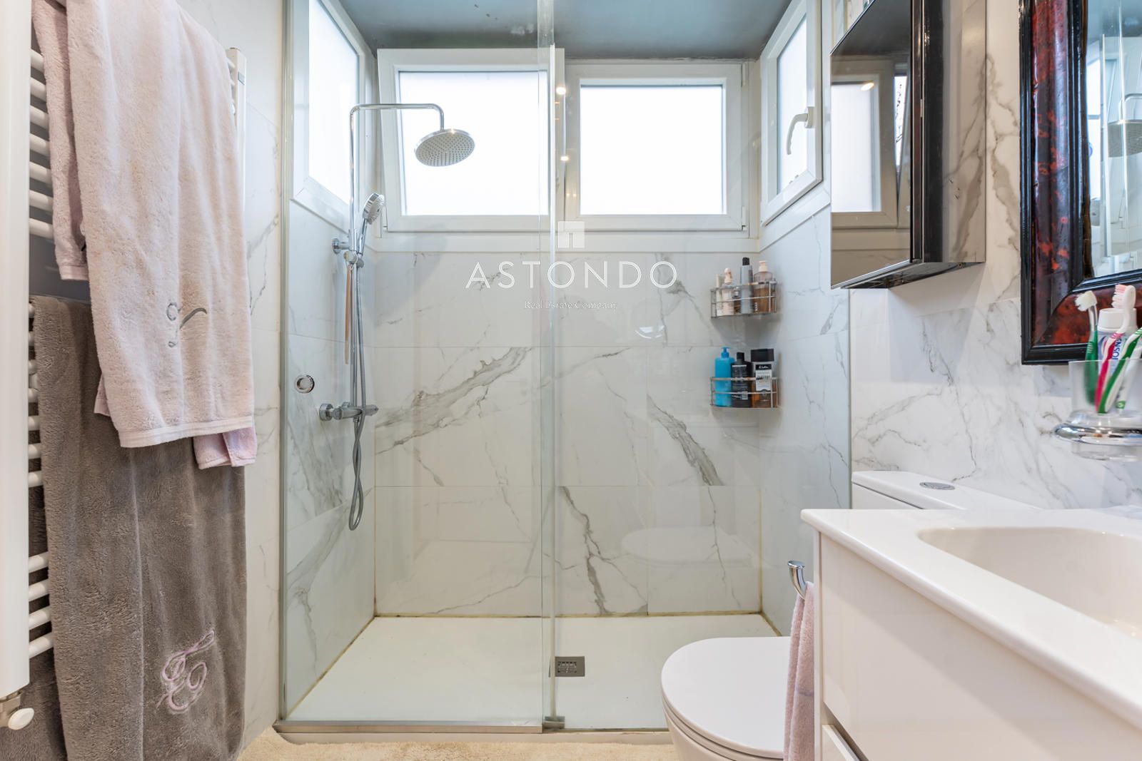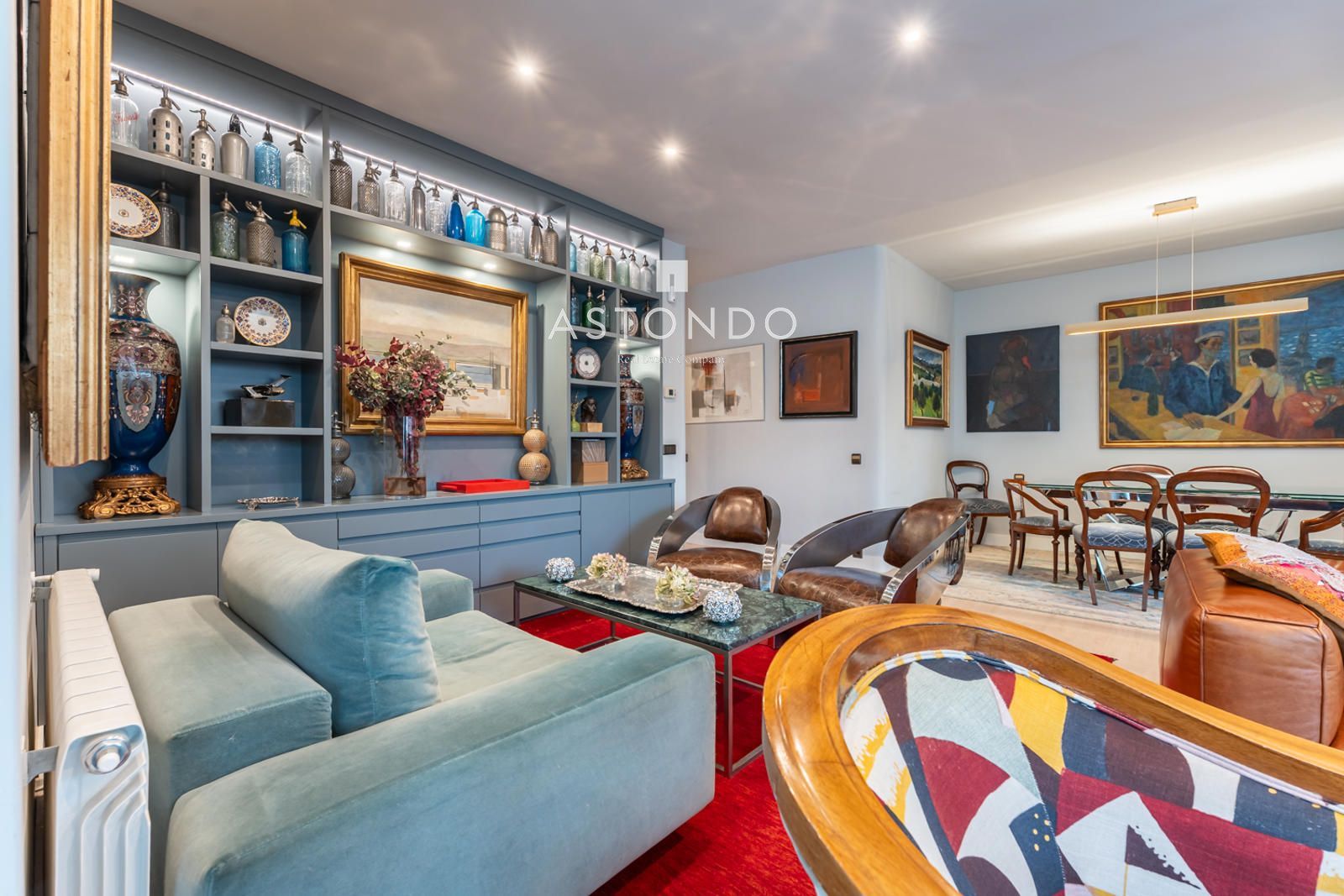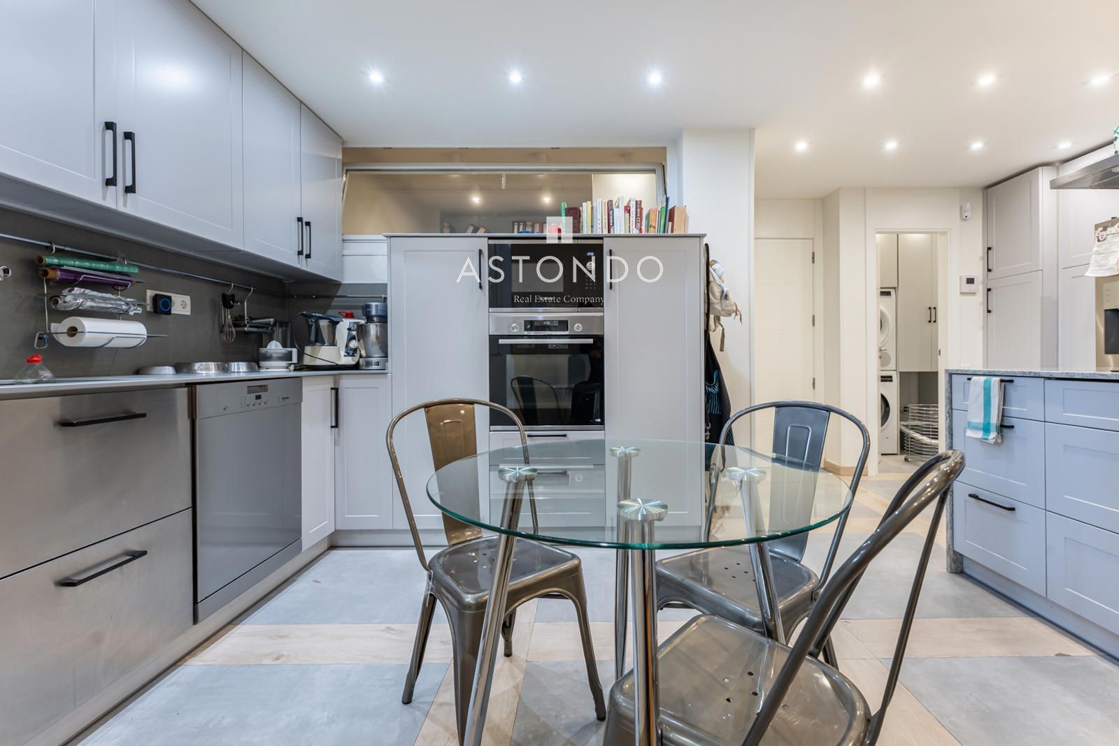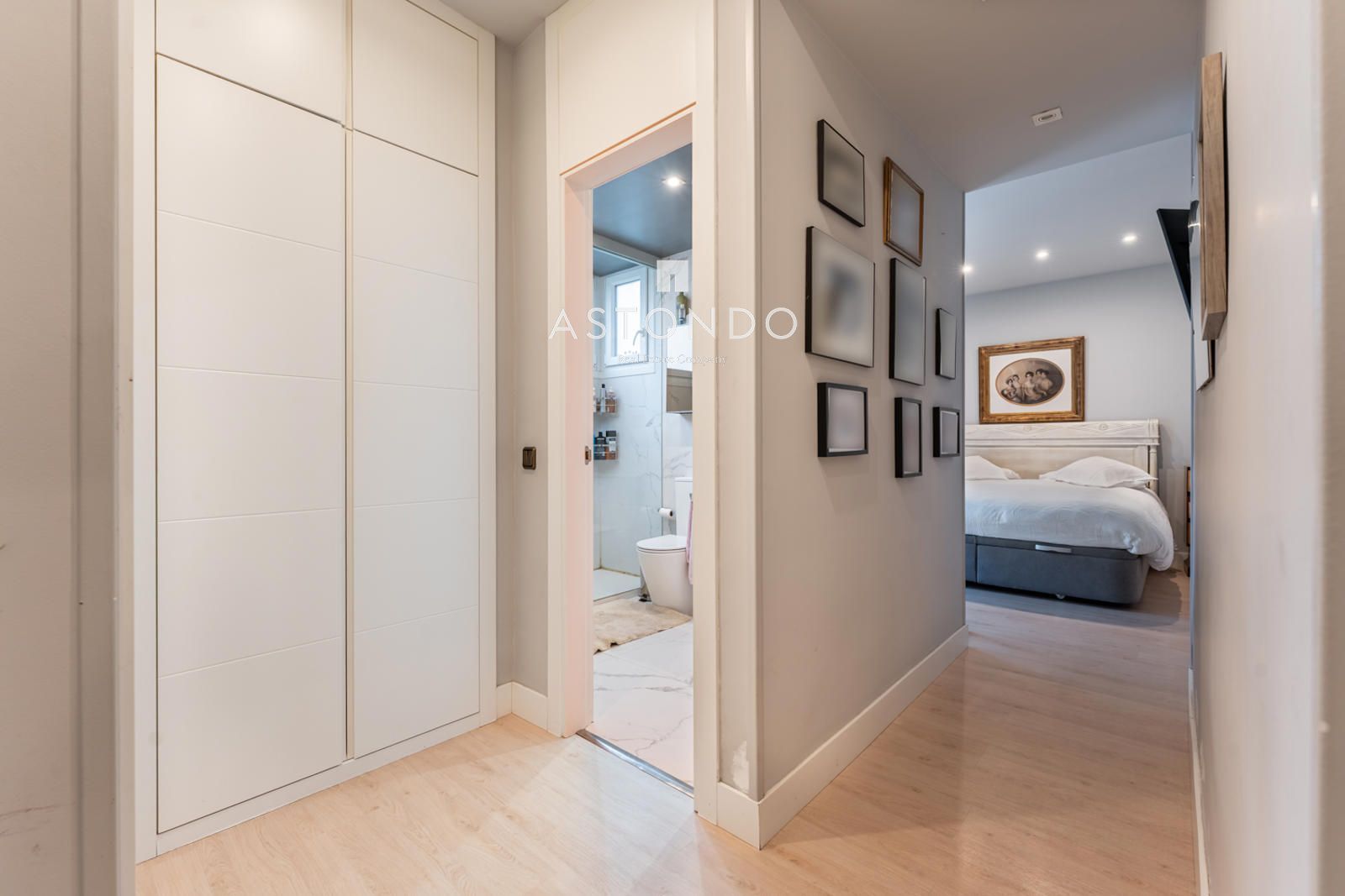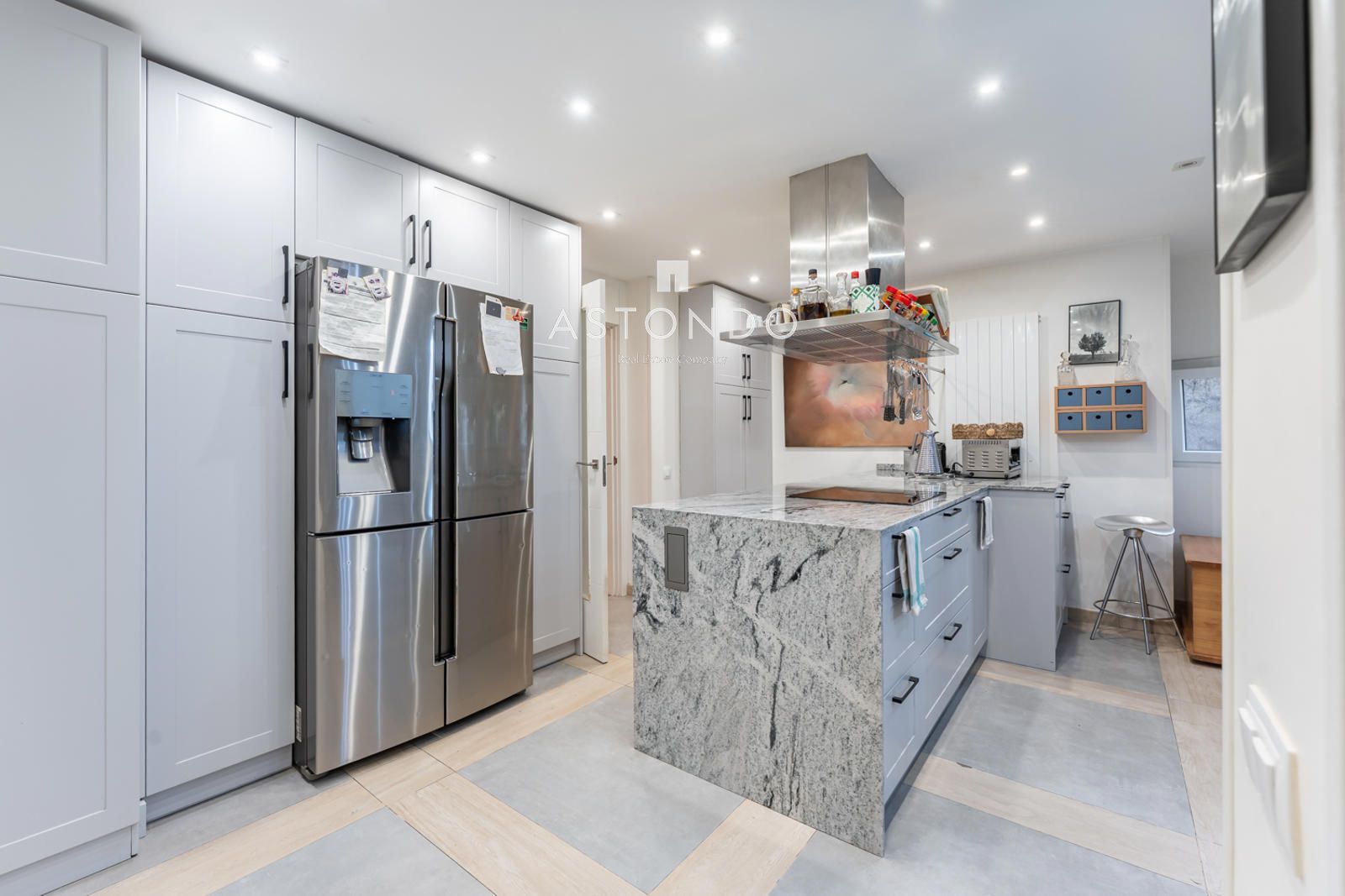 La vivienda ha sido reformada recientemente. dispone de dos entradas, la principal, a la que se accede directamente desde el ascensor, da paso a un amplio hall desde el que accedemos a la cocina, un espacio enorme, con zona de comedor e isla, también dispone de una lavandería y la habitación de servicio, que hoy en día se utiliza como despacho. A la izquierda del hall tenemos un gran salón comedor que destaca por los grandes ventanales que dan a una zona del jardín muy tranquila, casi parece un jardín particular, por lo que es muy tranquilo. La zona más privada de la casa está separada por una puerta, por la que accedemos a un pasillo, donde hay un gran armario ropero. La habitación principal cuenta con zona de vestidor y baño en suite, así como más armarios ropero, las otras dos habitaciones comparten otro baño. Todas las habitaciones tienen mucha luz natural.