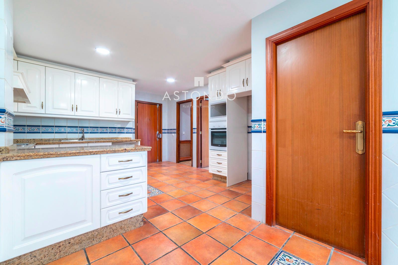La otra entrada de la vivienda es a la cocina, que destaca por su gran tamaño y cuenta con zona de lavandería así como habitación de servicio con baño y office. Desde la cocina también se accede al hall principal de la casa, desde el que accedemos a la zona más privada de la casa, que está compuesta por cuatro habitaciones, la principal con vestidor y baño en suite, y las otras tres comparten dos cuartos de baño. El agua caliente y la calefacción son centrales con contador individualizado. En esta zona hay otra terraza de 20 m2.