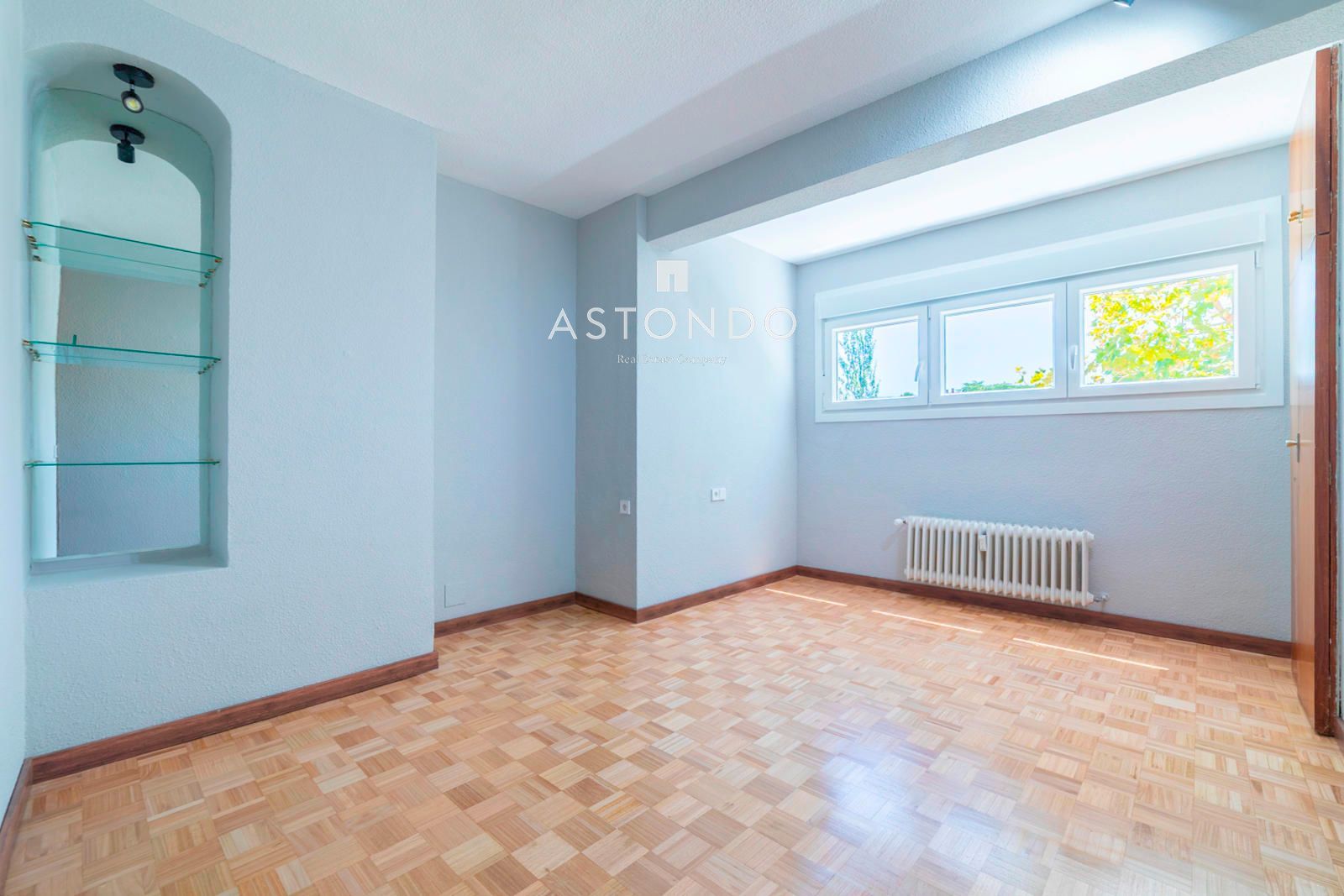 Completa esta vivienda una plaza de garaje con vigilancia 24/7. En el propio edificio hay gimnasio, cuarto para guardar bicicletas. Consta de portero físico, que retira la basura, y también tiene videoportero. En el patio del edificio hay zona de juegos infantiles y zonas comunes. La zona destaca por su tranquilidad y por disponer de todos los servicios de un típico barrio de Madrid, enclavado en una zona premium. Desde la casa se tiene fácil acceso a la M3, y por sus inmediaciones pasan muchas líneas de autobús.