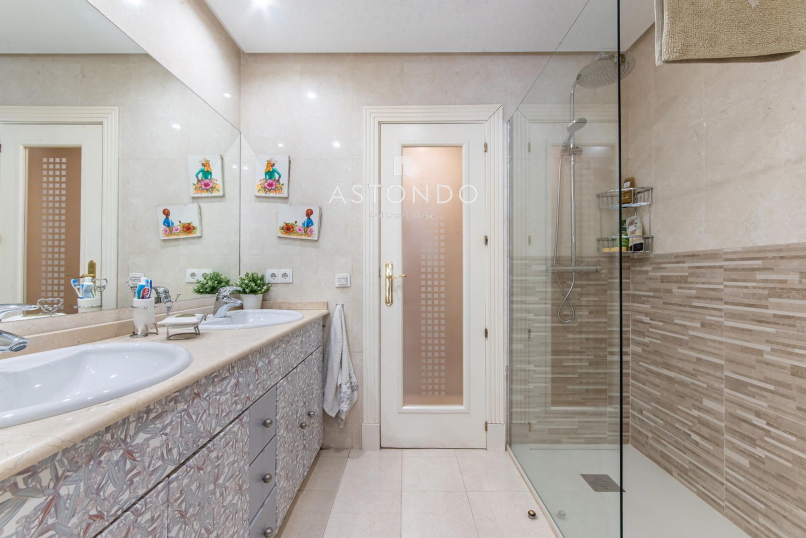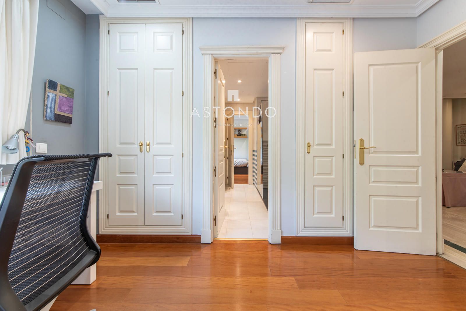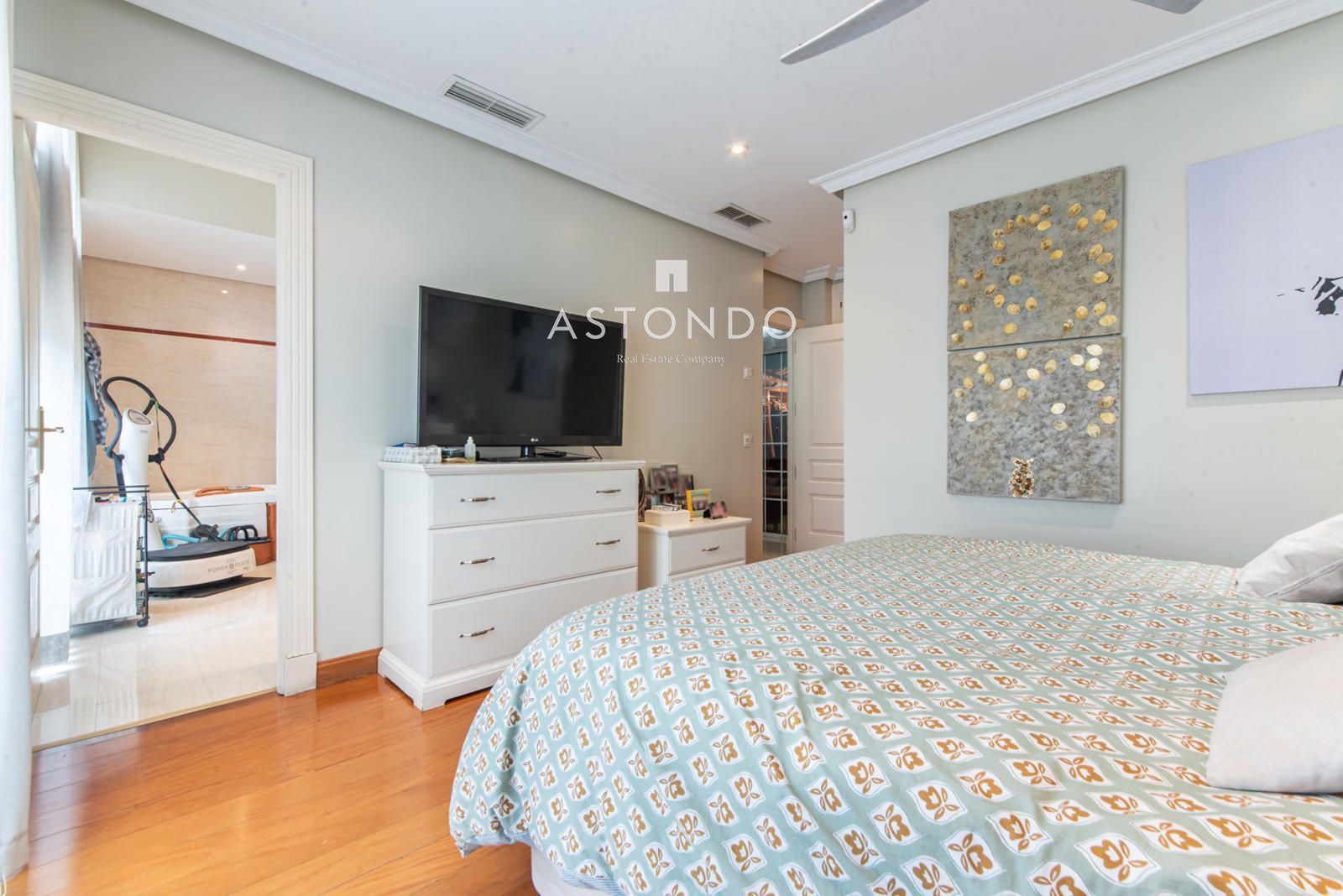 Cuando accedemos a la última planta encontramos un hall de acceso con amplios armarios y el espacioso dormitorio principal con vestidor, salida a una terraza y gran baño en suite con bañera de hidromasaje y ducha.