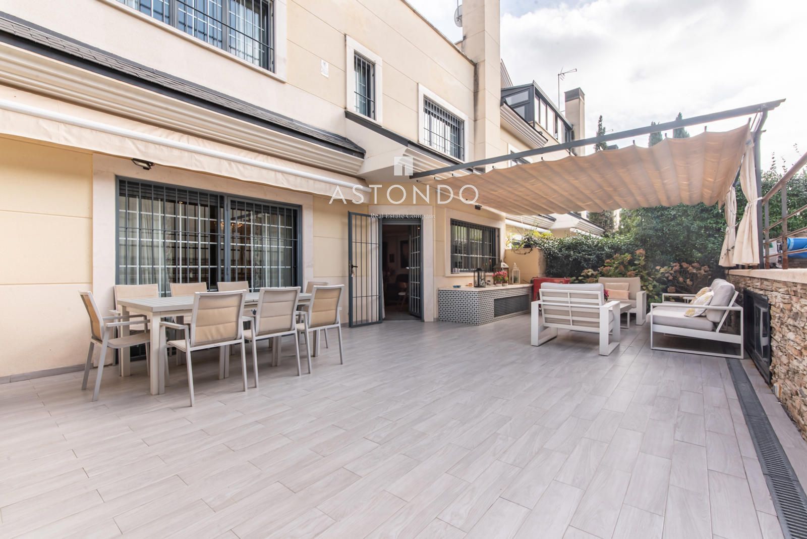 Elegante y funcional chalet adosado en venta ubicado sobre una parcela de 324m2 y con 487m2 construidos en 4 plantas.