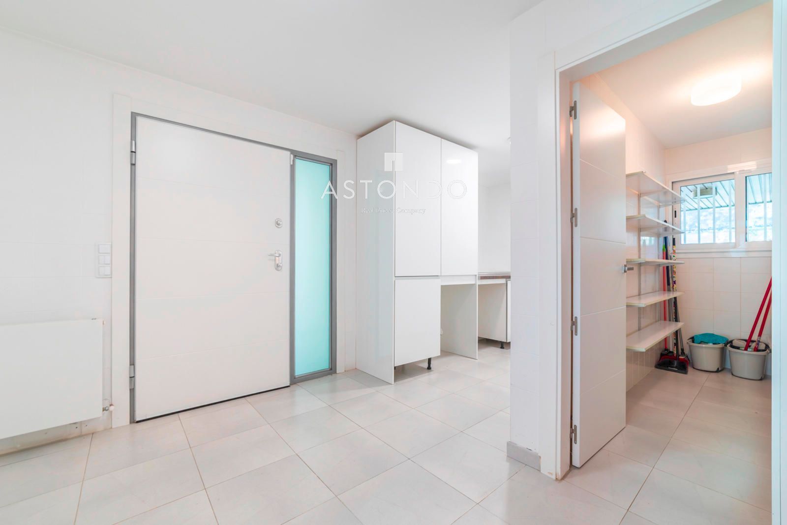 El nivel inferior de la casa ofrece una generosa zona polivalente, concebida para adaptarse a distintos usos: sala de ocio, gimnasio, zona de trabajo o incluso un espacio para celebraciones familiares. Completa esta planta una bodega, cuartos de almacenaje, y un amplio garaje cubierto con capacidad para varios vehículos, además de plazas exteriores en superficie.