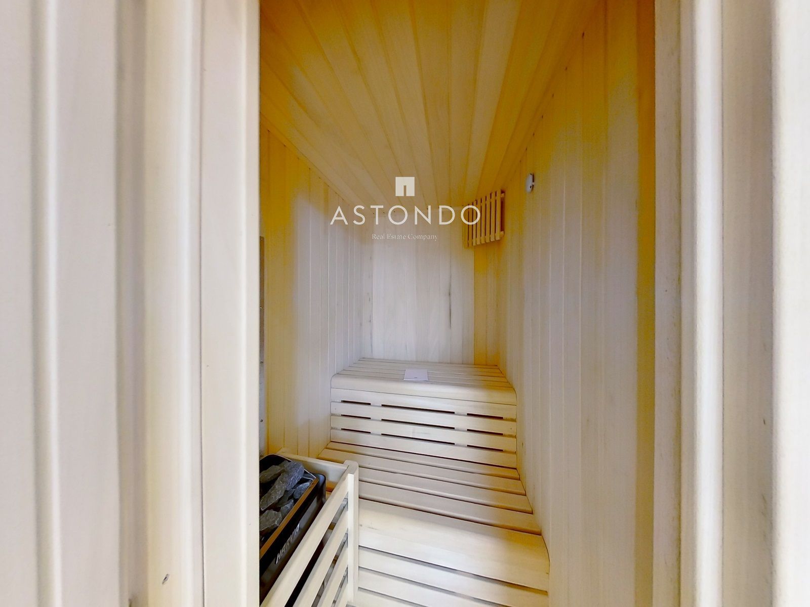 Está ubicada en una urbanización cerrada con múltiples servicios: zona infantil de juegos, pista de pádel, sauna, piscina para adultos y para niños, amplias zonas verdes, gimnasio, sala de cine y gastroteca. También tiene simulador de golf.