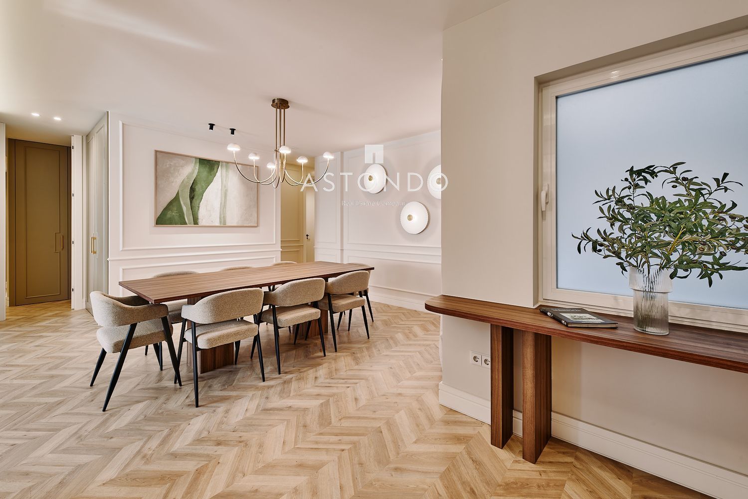 En una de las mejores zonas del barrio de Salamanca se vende piso de 3 habitaciones y 4 baños, totalmente reformado por el prestigioso equipo de ArcTempus, donde han creado un espacio de diseño contemporáneo y confort para crear un hogar en una finca clásica de 1967.