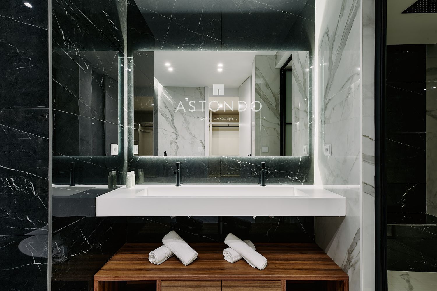 Se distribuye en un salón-comedor espacioso con salida a una terraza interior, una cocina independiente completamente equipada con zona de lavado, tres dormitorios y tres baños completos en suite, además de un aseo de cortesía. La habitación principal tiene vestidor. El proyecto interior destaca por su equilibrio entre luminosidad, materiales nobles y tecnología integrada, con aire acondicionado por conductos, calefacción central y sistema domótico.