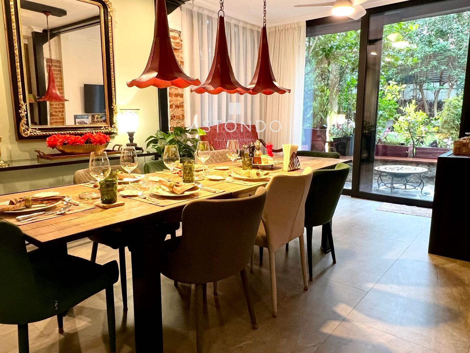 En otra planta hay otra habitación con baño exterior. En la planta baja esta situado el aseo de cortesía, el gran salón comedor con salida y vistas a jardines con ventanales de seguridad, chimenea de gas y entrada a la casa con una precioso portón del siglo XVl con capota de bienvenida. Jardín completamente iluminado, con toldos en todas las ventanas y toldos XL en algunas zonas de recreo. Jardín con cámaras y alarma de movimiento. Hay entradas, tanto delantera como trasera, especiales para mascotas, así como zona acotada especialmente para ellos, con salida por la cocina, Y para culminar esta magnífica vivienda, en la última planta existe una maravillosa terraza de aprox. 35m que se usa de huerto urbano y solárium con vistas espectaculares. Además de hallarse ahí mismo un gran salón de tv y gimnasio con bar/ cocineta y baño completo. En esta zona pueden hacerse dos habitaciones fácilmente con baño y un salón de TV mas pequeño.