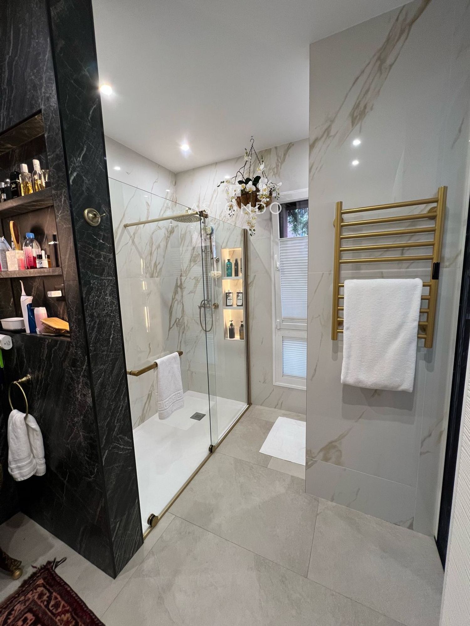 La calefacción es por suelo radiante. Mención especial merece la cocina de autor magníficamente equipada con 3 frigoríficos, 2 lavavajillas, 2 hornos (normal y XL), calienta platos, horno microondas, doble fregadero y otro normal pequeño con trituradora de alimentos y desperdicios. Cocina a gas de 5 quemadores con wok, y horno XL con vapor, marca STELLE italiana.